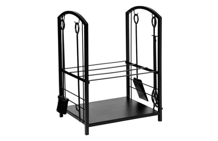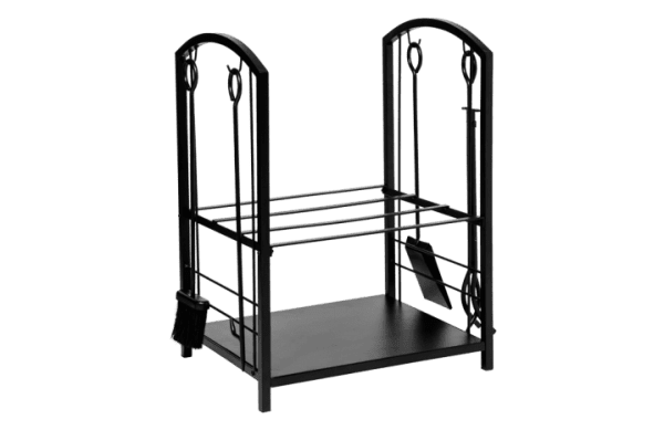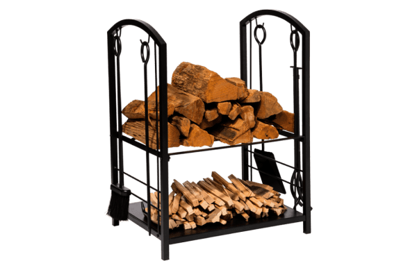 This 2 tier Log Holder & Toolset combines function with practicality. The log holder provides two-tiers with a completely covered base for storing smaller bits of kindling and the top rack is ideal for larger pieces of firewood. The tools include a broom, shovel, poker and tongs for you to keep your fire stoked throughout the winter.