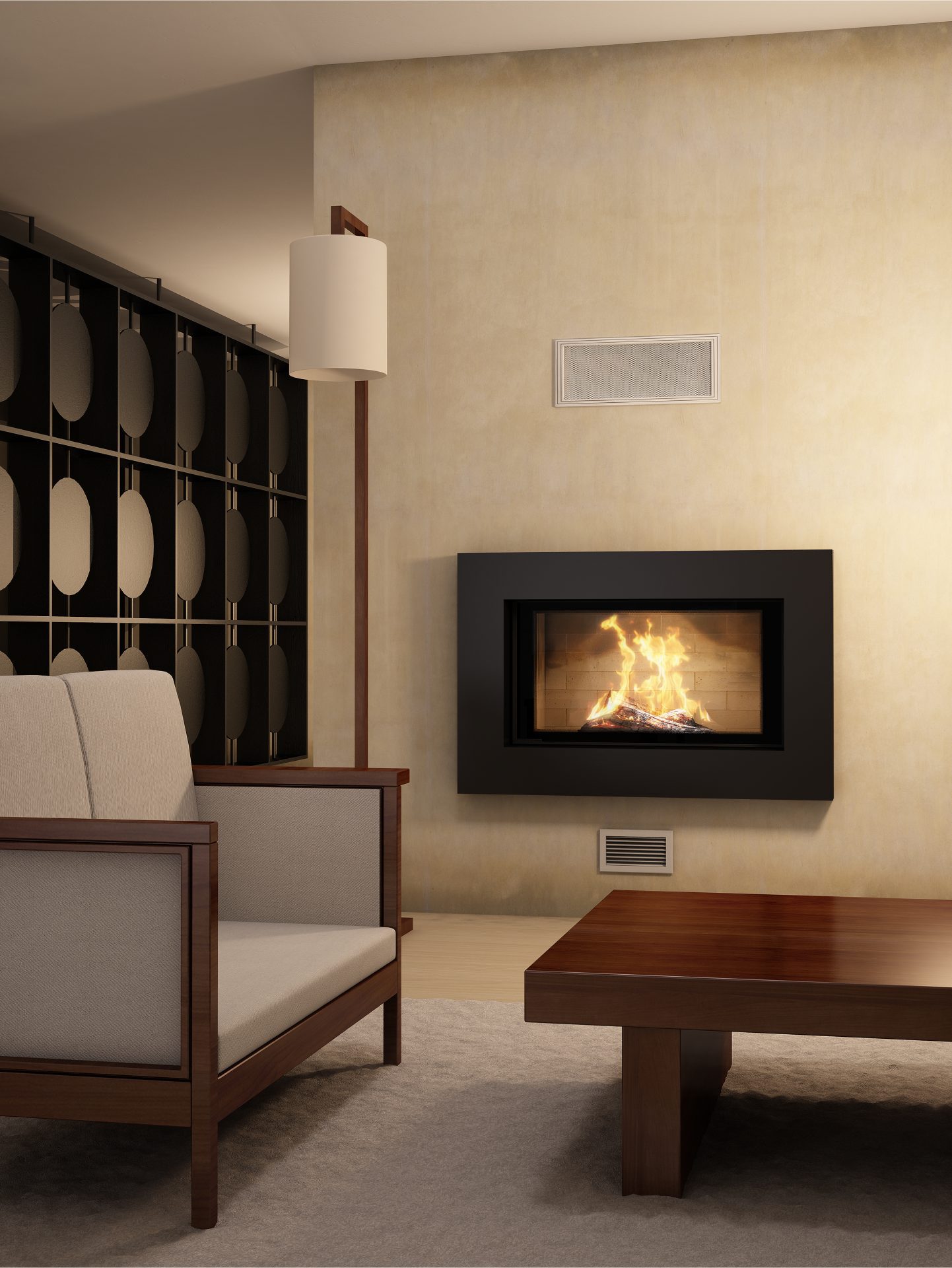The Axis H1200 inbuilt wood fireplace is equipped with DAFS technology with the aim to inject oxygen at a determined level inside of the combustion chamber. The supply of new oxygen will burn the gases and smoke that has not yet been burnt and prevent them from being released into the flue system. The advantages of this; a longer fire term, cleaner glass and bricks, also total combustion of the fire wood.