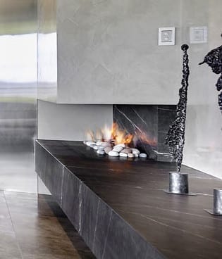 allows the designer to position the fire in corners with the solid side to the wall