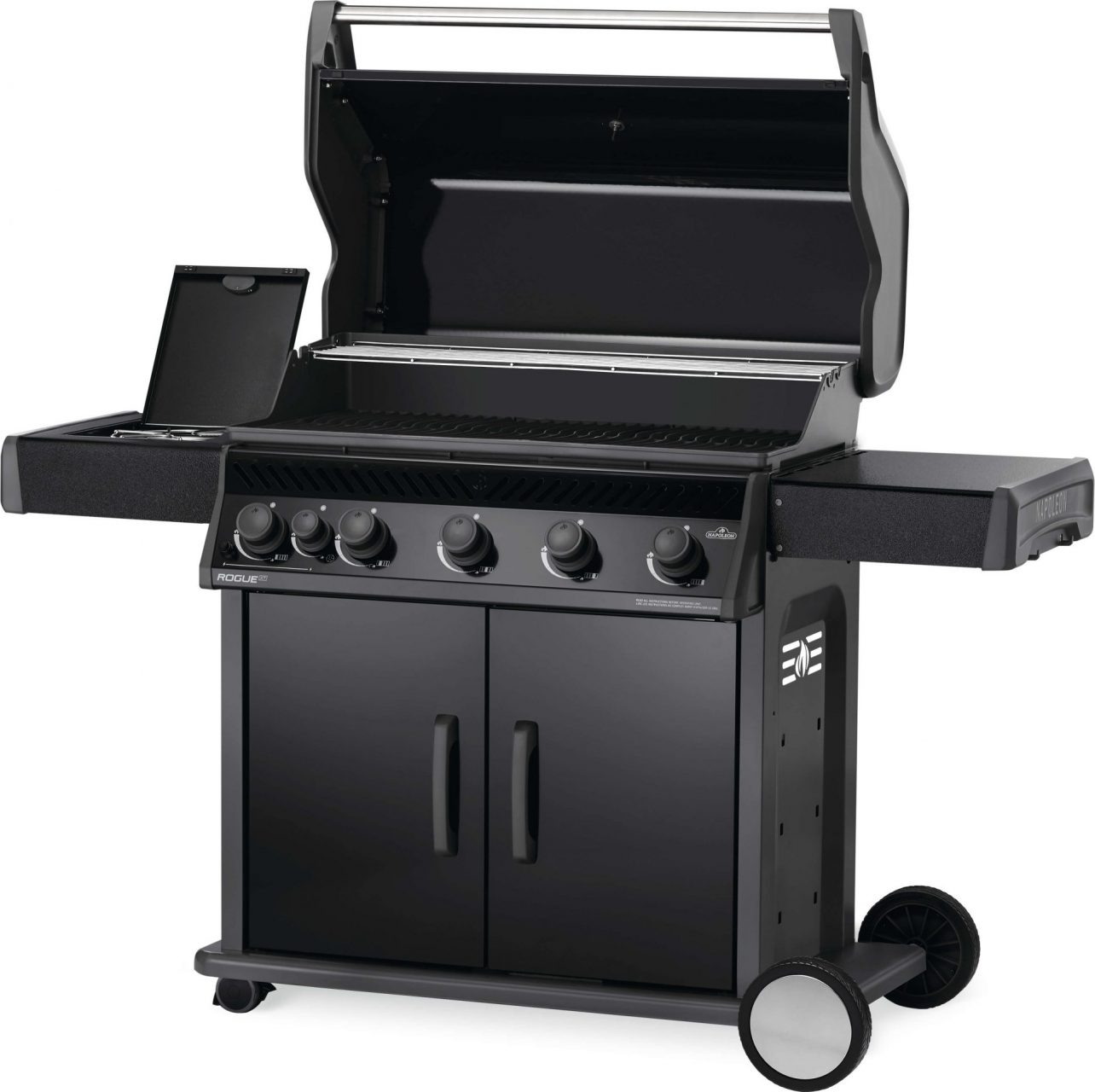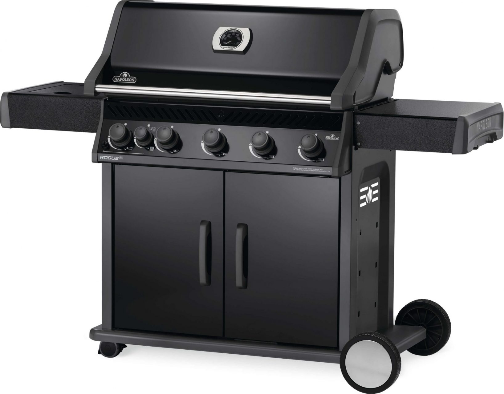 BBQ your way with high-quality grilling at an affordable price, the Rogue® XT Propane Gas Grill with Side Burner in black is a versatile addition to any backyard. This grill is made from durable stainless steel and features folding side shelves for extra space. Easily move to where the action is with the locking casters. Inside, dual level sear plates vaporize drips and five tube burners light instantly with the JETFIREâ„¢ ignition system. Feed a crowd; with 980 square inches of total cooking area which includes the infrared side burner, it’s no trouble at all. You’ll know it’s a Napoleon with the iconic wave stainless steel cooking grid for those distinctive sear marks and reversible cast iron griddle. BBQ your way and use this grill to sear, smoke, sizzle, bake, grill, roast and authentic charcoal grilling. Grill different and go Rogue® with the Rogue® XT 625 Gas Grill.